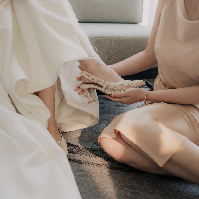Meet the pump that has it all, ETERNITY. Keeping it classy with her pointed toe and sling back, this heel is anything but ordinary. With lace detailing and complete with bow, this ETERNITY pump will ensure you make a statement. Material: Genuine Leather & Premium Lace Toe-shape: Pointed Heel: 7 cm Exchange size available True to size Indonesia If you have wider type of feet, get 1 size up from normal size 35: 22cm 36: 22,5cm 37: 23cm 38: 23,5cm 39: 24,5cm 40: 25cm 41: 25,5cm 42: 26cm